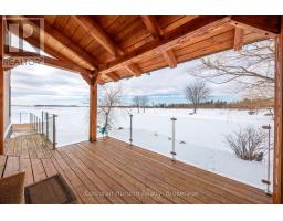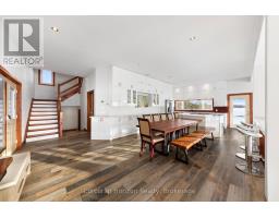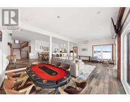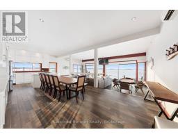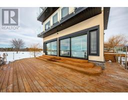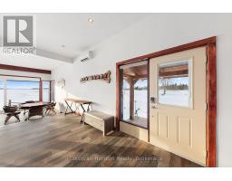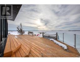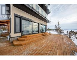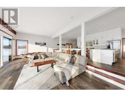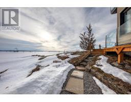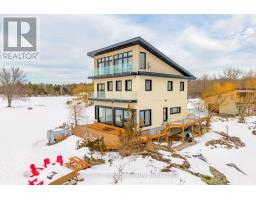 An extraordinary waterfront estate on Georgian Bay! This architecturally striking 2.5-storey residence offers approximately 3,000 sq ft of refined living space on a rare private peninsula with over 500 feet of pristine shoreline. Surrounded by water, the property delivers exceptional privacy, sweeping 270-degree panoramic views, and unforgettable sunsets.The main level is designed for elevated living and entertaining, featuring a seamless open-concept layout with expansive windows that frame the natural surroundings. The gourmet kitchen is beautifully appointed with premium stainless steel appliances, an oversized island with integrated cooktop and concealed ventilation and a walk-in pantry. The sunken living room creates a dramatic yet inviting setting, perfectly positioned to capture uninterrupted water views. A private office and elegant powder room complete the main floor. Upstairs, the second level offers a serene primary retreat and a walk-through closet with custom built-ins. Two additional spacious bedrooms feature unique loft areas, complemented by a stylish 4-piece bath and a dedicated laundry room.The third floor presents a versatile space with hardwood flooring and walkout to a private balcony which offers elevated views over the bay. It's perfectly suited as a lounge, studio, or additional living area. Outdoors, enjoy a natural sandy beach, private boat launch, and endless waterfront recreation. The peninsula setting creates a truly rare and immersive Georgian Bay lifestyle. A heated and insulated garage. Some trim work remains, offering the opportunity to personalize final finishes. Located just 90 minutes from the GTA, this is a rare offering combining luxury, privacy, and exceptional waterfront living. (id:47351)