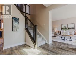 Beautifully maintained Hutton model offering approximately 2400 sq ft of living space, ideally located on a highly sought-after street and backing onto greenspace, a walking trail, and a school. This inviting home welcomes you with a spacious and impressive front foyer, a combined living and dining area, and a newly updated staircase. The main floor also features a cozy family room with walkout access, a 2 pc powder room, a potential main-floor laundry room, and a convenient mudroom off the double car garage. The bright, spacious kitchen is perfect for entertaining, complete with a separate cooking area and a walkout to a private landscaped backyard with an irrigation system. All four bedrooms are generously sized, including a primary suite with a 4-piece ensuite. A practical laundry chute runs from the second floor main bathroom directly to the basement laundry/craft room. The finished basement is designed for entertaining, featuring a large recreation room, fireplace, we bar, and versatile spaces including a dance or yoga area or workshop. Additional highlights include a high-efficiency heat pump system(2023),central air conditioning, upgraded windows and plenty of parking. Located in a welcoming community close to schools, parks, trails, shopping, hospital, sports facilities, arts centre, GO transit, and major highway- this exceptional home is a must-see! (id:47351)