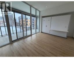 Bright and modern studio suite in the heart of Kitchener’s Innovation District at the Bright Building. This thoughtfully designed unit features floor-to-ceiling windows and an open-concept layout that fills the space with natural light. A sleek Murphy bed allows the living area to transform effortlessly from day to night, maximizing functionality and comfort. The contemporary kitchen is equipped with quartz countertops, built-in stainless steel appliances, and stylish cabinetry, while the bathroom offers Heated Floors for year-round comfort. Step outside to a private terrace—an ideal extension of the living space and a perfect spot to unwind. In-suite laundry adds everyday convenience. Residents enjoy premium amenities including a community BBQ, sauna, co-working space, social lounge, and rooftop terrace. Steps from the LRT, Google, Grand River Hospital, and downtown shops and restaurants, this is refined urban living at its best. (id:47351)