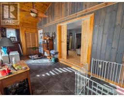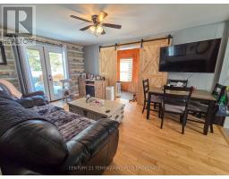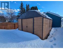 Charming 1.5-Storey Home in a Prime Englehart Location. This delightful1.5-storey home offers comfort, convenience, and plenty of character, all within walking distance of schools, the arena, and downtown amenities. Situated on a generous lot with a detached garage and fully fenced backyard, it's an ideal property for families, pet owners, or anyone seeking a welcoming place to call home. Inside, you're greeted by a spacious rear entryway with main-floor laundry for everyday ease. The main level features a 4-piece bathroom, a comfortable primary bedroom, and an inviting living and dining area with patio doors leading directly to the yard. The galley-style kitchen includes newer appliances, and the standout feature is the expansive family room complete with a cozy natural gas fireplace-perfect for gatherings or quiet evenings in. The second floor offers two well-sized bedrooms, providing great flexibility for family, guests, or a home office. The unfinished basement delivers tons storage space. Outdoors, enjoy a detached garage, storage shed, covered deck area, and a fully fenced yard-an excellent setup for outdoor living and peace of mind. (id:47351)
