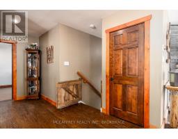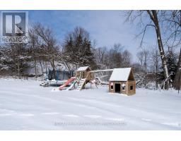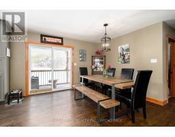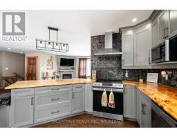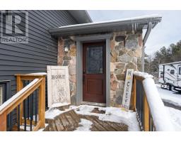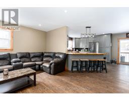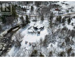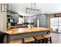 Welcome to peaceful country living in this lovely updated bungalow, set on just over an acre of picturesque property. Surrounded by mature trees and featuring a gently flowing stream, this setting offers the perfect blend of tranquility and space for the whole family to enjoy. Spend your summers entertaining on the expansive deck, cooling off in the above-ground pool, and watching the kids play freely in the wide-open yard. Step inside to a spacious and practical mudroom, ideal for busy family life, which leads into a bright and inviting open-concept main level. Filled with natural light, this space showcases a stunning kitchen complete with warm wood countertops and seamless flow into the dining area, where patio doors lead directly out to the backyard oasis. The cozy living room provides the perfect place to unwind at the end of the day. The main floor also features a generous primary bedroom with a walk-in closet, along with a well-appointed 4-piece bathroom. Downstairs, the fully finished lower level offers even more living space, including a comfortable family room with a charming wood stove, three additional bedrooms, and a 3-piece bathroom combined with convenient laundry. A truly welcoming country property, offering comfort, charm, and room to grow-this is a place you'll be proud to call home. (id:47351)