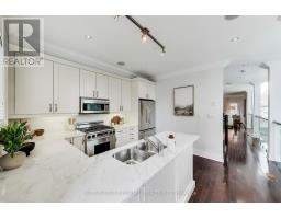 Hidden Gem at 'Annette Lanes' in Bloor West Village: Sophisticated Freehold Townhome with live/work potential! Welcome to a truly exceptional & rarely offered 2700 square foot Townhome, where timeless elegance meets modern versatility across four above-grade thoughtfully designed levels. A grand double-door entrance with wrought iron detailing opens to an impressive entry level featuring exquisite marble flooring & an airy, light-filled ambiance enhanced by expansive windows with a privacy glass option. Perfect as a dream home office, this versatile space also features a cozy gas fireplace and inviting sitting area, easily doubling as a family room or den, with a powder room and dedicated laundry for added convenience. The second level reveals a bright open-concept living and dining area enhanced by a second gas fireplace, pot lights, and dramatic two-storey windows that flood the space with natural light. An atrium-style glass railing overlooks the level below, adding architectural sophistication. The kitchen is beautifully appointed with marble countertops, stainless steel appliances, & a functional layout for entertaining, with a walkout to a stunning south-west facing brick terrace featuring three charming cut-out windows - perfect for entertaining & relaxing. The third level offers two spacious bedrooms, including one with a private balcony, along with a well-designed double-entry 4-piece bathroom with glass shower.The top level is a true retreat, showcasing a luxurious primary suite with vaulted ceiling, skylight, & a striking oversized round window. Enjoy a private third balcony & a marble 5-piece ensuite complete with water closet, dual vanities, soaker tub, & separate glass shower. With a private garage & just steps to restaurants, cafés, boutique shopping, TTC and everyday amenities, as well as the Humber River trails, this is a rare opportunity to own a distinctive property that offers luxury, flexibility, and an unbeatable location all in one. (id:47351)