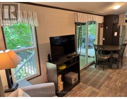SELLER MOTIVATED! BRING ALL OFFERS! Enjoy a large private area backing onto beautiful quiet treed ravine on this spacious lot away from neighbours on either side. POTENTIAL FOR AIR BNB! Experience affordable Muskoka cottage seasonal living from May to October in this 2 bedroom, 1 bathroom clean mobile home unit. Nestled in a well treed quiet area of the Resort, perfect for familyand friends. Close proximity to amenities, including a short walk or golf cart ride to the beautiful beach. The Lake is spring fed with a hard sandbottom. Nice 10x20 deck screen room for additional living space. Firepit and outdoor chairs for you and your guests. A multitude of scheduled activities and events for all ages free of charge. Kayaks, canoes, and paddle boards are available free for your use all season from May 1 toOctober 31. Resort fees include lawn maintenance, hydro, sewers and water. You can choose to become part of the Resort Rental Program for the times you are not using the cottage. Click on the multimedia button below, for a virtual tour. (id:47351)