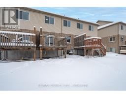 Located in a convenient and family-friendly neighbourhood, 77 Mountain Ash Drive is a well-designed 3-bedroom, 1.5-bathroom two-storey townhome built by Geertsma Homes in 2014. This home offers a practical layout, modern finishes, and excellent use of space, making it an ideal option for first-time buyers, young families, or anyone seeking low-maintenance living. The main floor features an open-concept layout with hardwood flooring, a bright living area, and a functional kitchen equipped with stainless steel appliances. A 2-piece bathroom adds everyday convenience, and there is direct interior access to the attached single-car garage. From the living area, step out to the rear deck, perfect for summer BBQs or enjoying time outdoors. Upstairs, the second level offers three well-sized bedrooms. The primary bedroom includes two closets, one walk-in and one shelved, along with a cheater door to the main 4-piece bathroom. Laundry is conveniently located on the second floor, making day-to-day living easy and efficient. The lower level is fully finished with a large recreation room, offering flexible space for a home theatre, office, gym, or games room. There is ample storage throughout, including under the stairs, in the mechanical room, and in a large storage room. If you need more living space, the storage room is already roughed in for a future full bathroom, providing excellent potential for added value. Additional features include energy-efficient natural gas forced-air heating, central AC, a smart thermostat, and a rear yard suitable for outdoor play or relaxation. Ideally located close to the 401, grocery stores, gas stations, schools, and everyday amenities, this home combines comfort, efficiency, and convenience in a sought-after Belleville location. (id:47351)
