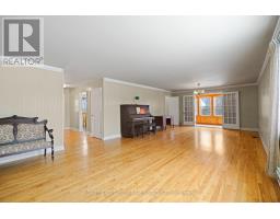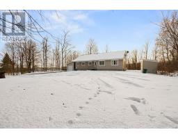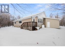 Set on over 11.5 acres in the peaceful village of Vernon, this spacious 3 bedroom, 2-bath bungalow offers privacy, versatility, and exciting future potential - including the possibility of land development or a small subdivision. See attached pre-approved site plan for 18 lots. The main level is designed for easy, carpet-free living and features a large primary bedroom with double-door closet, 2-piece ensuite, and a picture window overlooking the surrounding trees. The bright eat-in kitchen provides ample cabinetry and a large window with views of the private backyard and no rear neighbours. Two additional bedrooms, main-floor laundry, and a functional layout make everyday living comfortable and convenient.A sun-filled dining area flows into a generous living room, perfect for gatherings, while the charming enclosed sunroom with warm wood finishes offers a peaceful space to relax and enjoy the natural setting year-round.The lower level expands your options with a fourth bedroom, potential home office, and a large unfinished area ideal for storage or future living space. Additional features include a durable metal roof, attached garage, and a wide gravel driveway with plenty of parking.Whether you're seeking multi-generational living, room to grow, or a private retreat with long-term development potential, this property delivers space, serenity, and opportunity in a truly tranquil setting. (id:47351)