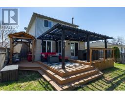 Welcome to this beautifully updated 3+1 bedroom, 2.5 bath home offering over 1,600 sq ft of well-designed living space, ideal for family living. The main floor features a spacious living and dining area enhanced by wainscoting, an eat-in kitchen, a 2-piece bathroom, and a convenient laundry room with direct access to the attached garage. Updated patio doors off the kitchen open to a private backyard retreat, complete with a professionally designed two-tier deck, covered pavilion, and patio area, perfectly suited for an outdoor kitchen and summer entertaining. Upstairs, the generous primary bedroom offers ample storage, along with two additional bedrooms served by a fully remodeled 4-piece bathroom. The fully finished lower level includes a 3-piece bath and a flexible layout, ideal for a teenager's space or accommodating overnight guests. Extensive upgrades throughout include all new windows, exterior doors, and the garage door. (id:47351)