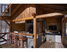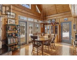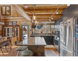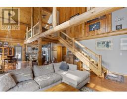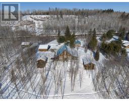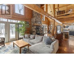 Waterfront Log Home on the Kaministiquia River - 779 Harstone, Kakabeka Falls / Stanley Custom built in 2009 by Poulin Built Custom Log Homes, this 1800 sq ft quality log home sits on 2.6 acres with southern exposure and beautiful river frontage. Located in the Kakabeka Falls / Stanley area, the property offers privacy, waterfront access, and a dock system ideal for swimming and boating as well as winter activities like snowmobiling and skiing. The home features 2 large bedrooms(potential for a third), primary ensuite, full mainfloor bath, open concept main floor with 25 ft cathedral ceilings, loft area, 320 square foot sunroom, and a spectacular custom stone fireplace. Exposed wood timbers throughout and metal roof. Additional highlights include a 2.5 car detached garage, bunky with deck overlooking the water, outdoor kitchen building with sink, dining area, refrigerator and brick fireplace, waterside sauna, newer hot tub, large storage buildings, woodshed, generator, and a complete secondary residence with in floor heating, living room, kitchen and bathroom. A rare opportunity to own a Poulin Built custom waterfront retreat. (id:47351)