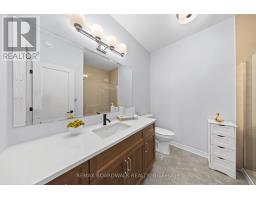 Welcome to Cardinal Creek Village in Orléans, a sought-after community by Tamarack Homes known for its scenic walking trails, rolling landscapes, and nearby water views. Located on a quiet court, this extensively upgraded semi-detached walkout bungalow offers exceptional design, functionality, and true move-in-ready living. Interlock walkway and extended driveway lead to a welcoming front veranda. The main level features full tile flooring throughout, including the bedrooms, with flat ceilings, pot lights, crown moulding, and large windows, creating a bright, open-concept living and dining space. Patio doors from the living room lead to an elevated deck, ideal for enjoying evening sunsets. The upgraded kitchen offers ceiling-height cabinetry with two-tone finishes, custom fridge cabinetry, quartz countertops, extended island with breakfast bar, undermount sink, upgraded faucet, herringbone tile backsplash, gas stove, and detailed lighting. The primary bedroom includes a walk-in closet and an upgraded 3-pc ensuite with quartz counters and a double shower. The main level also features a 2-pc bath, a walk-in pantry or optional laundry, and inside access to an oversized single-car garage. The finished walkout basement with high ceilings includes a second bedroom with a walk-in closet, a 5-pc bath with double sinks and quartz counters, a separate laundry room, and a rec room with French doors and a wall-mounted fireplace. Patio doors lead to a private interlock patio. Plenty of storage. Enjoy access to community amenities, including a clubhouse, tennis courts, parks, and scenic walking trails.Additional features include a gas line for a BBQ, a tankless water heater, an air exchanger, additional kitchen outlets, dimmable pot lights, modern interior doors with matte-black hardware, and oak staircase railing. A rare opportunity to own a premium, thoughtfully upgraded walkout bungalow in one of Orléans' most desirable communities. CLUB HOUSE $409/yr (id:47351)