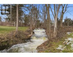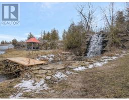 Tucked away on the water at Hallowell Mills Cove, this rare 4.7 acre holding offers a combination of land, location, and legacy that is seldom available in Prince Edward County. With direct waterfront, dramatic natural features, and immediate proximity to the Picton Golf & Country Club, the property delivers both privacy and connection in equal measure. The landscape is defined by movement and sound, as two waterfalls cross the site- one carving a deep rock gorge, the other flowing gently toward the cove. Spread across the grounds are several distinct structures, creating a compound-like setting with flexibility for personal use, guest accommodation, or future planning. At the center of the property is a five-bedroom, 2.5 bath residence filled with authentic character, including wide pine floors and striking ceiling heights throughout. Nearby, a substantial three-story boathouse- originally designed to accommodate large yachts - has been partially reimagined as a refined one-bedroom suite finished in rich rosewood and positioned directly over the water. A separate winterized cabin adds yet another layer of versatility. Anchoring the site is the original mill infrastructure, a visible reminder of the property's role in the area's early industrial history, where water power once supported both grist and lumber operations. Whether envisioned as a private waterfront retreat, a multi-use family compound, or a long-term investment in a rapidly envolving area of Picton, this is a property defined by scale, setting, and opportunity. ** This is a linked property.** (id:47351)