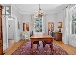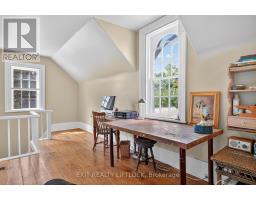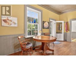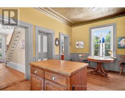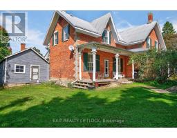 This welcoming country classic features wraparound porches that add charm and character to a lovely 1.7-acre hideaway. A traditional front entrance opens to a spacious foyer with high ceilings, generous principal rooms, and a graceful staircase leading to the upper level. The living room is an inviting place to relax, with a cozy wood fireplace and plenty of windows framing the surrounding scenery. A formal dining room, perfect for entertaining, adjacent to a den/library lined with built-in bookcases. The country kitchen is a highlight, showcasing the original tin ceiling in mint condition, custom butternut cabinetry, built-in appliances, and a large centre island. An eating area with walk-out access to the porches makes this space ideal for family gatherings. Convenient main floor laundry, a separate walk-in pantry with excellent storage, and a three-piece bath add to the practicality of the layout. Upstairs, four spacious bedrooms are complemented by an office area and a light-filled art studio, where natural light filters beautifully through the original glass window. A back staircase provides a charming connection down to the kitchen area. The property includes a small barn with two box stalls, storage, and a workshop area. Once home to two horses, with room for a fenced paddock. Perennial gardens, apple trees, and an asparagus patch complete this picturesque parcel. Ideally located within easy distance of historic Millbrook Village, Bailieboro, and Rice Lake, and just minutes to Highway 115 for commuters, this property offers the perfect blend of character, charm, and convenience. (id:47351)