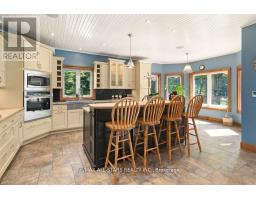 Welcome to Black Bear Estates, where luxury and nature converge. This magnificent 3,404 Sq/Ft home offers over 190 ft of private waterfront connected to the renowned Trent Severn Waterway. Featuring 6 bedrooms and 4 bathrooms, this home is designed for comfort and style. The main floor welcomes you with wide plank wood floors, 18 ft vaulted ceilings in the living room and a stunning floor-to-ceiling stone fireplace that sets the tone for relaxation. The open-concept layout also includes a large dining area, a gourmet eat-in kitchen, and main-floor laundry for convenience. The primary suite is a true retreat, with his-and-her walk-in closets, a spa-like 5-piece en-suite with a Jacuzzi tub, dual vanities and a glass walk-in shower. Step out onto the private deck to enjoy sweeping views of the expansive backyard and tranquil waterfront. Upstairs, you'll find two bedrooms, an oversized versatile bonus room, perfect for a bedroom, games room, or office. The walk-out basement adds even more living space with a large family room, games area, workout space, bedroom and bathroom. There's also a generous storage room and oversized mudroom with plenty of space to keep everything organized. Outside, the property offers a large backyard, perfect for outdoor entertaining with a beach like waterfront and private dock or quiet evenings by the fire. This home is ideal for those seeking a luxurious, peaceful lifestyle on the water. (id:47351)