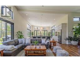 Experience refined living in this stunning custom-built executive home located in the heart of the 1000 Islands. This immaculate 2-bedroom, 2-bath residence offers exceptional craftsmanship, elegant design, and a brilliant open-concept layout all on one level. The home is filled with natural light from expansive windows that showcase partial views of the St. Lawrence River. The chef's kitchen is an entertainer's dream, featuring two large islands, a gas range, and high-end finishes throughout. Vaulted ceilings and stylish details elevate every room, creating a bright and inviting atmosphere. Step outside to your private backyard retreat, complete with a hot tub and patio - perfect for enjoying your morning coffee or evening relaxation. The property also includes a large heated garage with oversized doors, offering ample space and convenience. Situated on a quiet cul-de-sac, just steps from the parkway path and marina, this home combines luxury and lifestyle. (id:47351)
