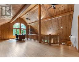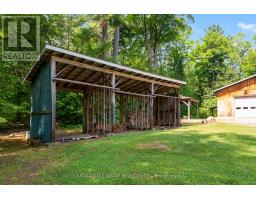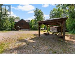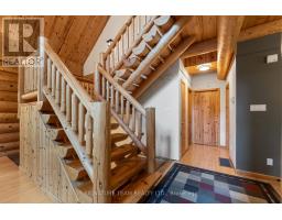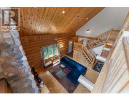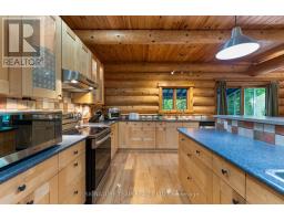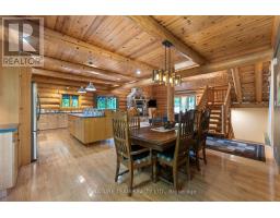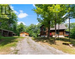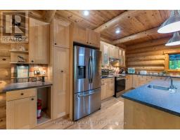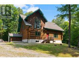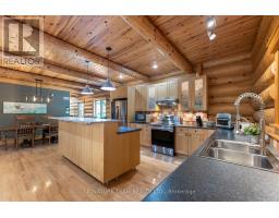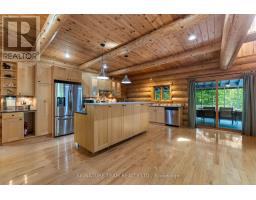 Set amidst 14.95 acres of mixed hardwood forest minutes from Pembroke, this extraordinary custom built log home offers a rare blend of artisanal craftsmanship and refined rural living. Designed with timeless attention to detail, this home is a true testament to natural beauty and enduring quality. The heart of the home is an expansive open-concept kitchen and dining area, thoughtfully laid out. Adjacent, the great room is anchored by a floor-to-ceiling stone fireplace and framed by dramatic 25-foot pine tongue-and-groove cathedral ceilings, creating a sense of warmth and scale rarely found. You'll find 2-beds, a 4-piece bath and screened in porch off the kitchen. Maple hardwood floors flow seamlessly throughout the main level, while handcrafted log railings and a custom staircase add authenticity and rustic elegance. The 2nd level opens to a spacious loft overlooking the great room below. Additionally, the large primary features 11-foot ceilings, bamboo flooring, a walk-in closet, and ensuite bathroom. Full basement is partially finished with its own entrance, a large rec room, a bedroom, 3-piece bath and a wood elevator. Outdoor living is equally impressive, with a large deck complete with built-in bench seating and a screened 3-season porch that invites you to relax. The detached 30' x 40' garage offers versatility, boasting 14-foot ceilings, 200 amp service, a 12' x 12' room with A/C, a bar area, insulated with radiant in-floor heat, and hot/cold water. In addition to the garage, there is also a gazebo area, lean-to, outbuilding for storage and a 3-season bunkie with a cookstove and kitchenette. Modern updates include a LG stove, dishwasher, washer, dryer, water treatment system, pressure tank, and roof was replaced in 2023. For those seeking a lifestyle in harmony with nature and elegance, this is a rare opportunity to experience the best of country living in a setting of charm, comfort, and craftsmanship. Min 24 hr irrevocable. (id:47351)