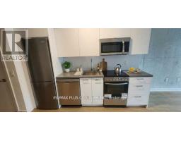 Welcome to Bauhaus Condos - Brand New 1 Bedroom + Den Suite! Be the first to live in this brand new 1-bedroom + den, 1-bathroom condo, designed with a modern, urban aesthetic in mind. This bright and functional suite features an open-concept layout with large windows that fill the space with natural light and highlight the exposed concrete walls, giving the home a sleek, contemporary loft-style feel. The modern kitchen offers stainless steel appliances, quartz countertops, and clean-lined cabinetry, perfectly balancing style and practicality. The living and dining area opens to a large private balcony, ideal for relaxing or entertaining. The bedroom features a large closet for ample storage, while the den provides a versatile space that can be used as a home office or guest area. The bathroom showcases modern finishes and a glass-enclosed shower, and in-suite laundry adds everyday convenience. Located in the heart of Downtown Toronto's King East Design District, you're just steps away from transit, trendy restaurants, cafés, shops, and parks, with easy access to the Distillery District, St. Lawrence Market, and the Financial Core. *Photos have been virtually staged. (id:47351)