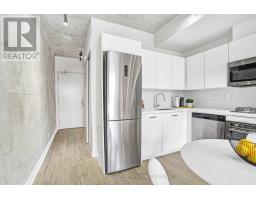 This bright unit features a functional open-concept layout with floor-to-ceiling windows and plenty of natural light. Modern finishes throughout, including a concrete feature wall and a sleek kitchen. The large balcony spans the entire length of the unit and includes a gas hook-up for a BBQ. The bathroom is equipped with a full-sized tub, quartz counter, and a large vanity. Generous-sized bedroom includes a large closet and sliding doors. Located in a quiet boutique building in the heart of the city. Walking distance to the TTC, grocery stores, restaurants, parks (and dog park), Waterworks Food Hall, The Well, and King St W nightlife. Ideal for a professional seeking a high-quality home in a prime location. (id:47351)