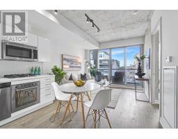 This bright unit features a functional open-concept layout with floor-to-ceiling windows and plenty of natural light. Modern finishes throughout, including a concrete feature wall and a sleek kitchen. The large balcony spans the entire length of the unit and includes a gas hook-up for a BBQ. The bathroom is equipped with a full-sized tub, quartz counter, and a large vanity. Generous-sized bedroom includes a large closet and sliding doors. Located in a quiet boutique building in the heart of the city. Walking distance to the TTC, grocery stores, restaurants, parks (and dog park), Waterworks Food Hall, The Well, and King St W nightlife. Ideal for a professional seeking a high-quality home in a prime location. (id:47351)