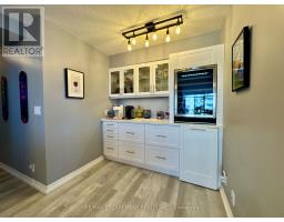 Welcome to Unit 809 at the prestigious Ironstone Condominiums, located at 1940 Ironstone Drive in desirable Uptown Burlington. This bright and spacious corner suite features 918 square feet of living space, including 2 bedrooms plus a versatile den and 2 full bathrooms, thoughtfully upgraded with stylish finishes throughout. The modern kitchen showcases white cabinetry, white quartz countertops, a double under-mount sink, and a mosaic tile backsplash. The adjacent den has been cleverly converted into an extended pantry and beverage station complete with beverage fridge and wine cooler-perfect for entertaining and everyday convenience. Neutral grey vinyl flooring and upgraded lighting fixtures flow seamlessly throughout the suite. Floor-to-ceiling windows fill the living spaces with natural light and lead to a large private balcony accessible from both the living room and second bedroom. A separate dining area provides a comfortable space for hosting and family meals. The primary bedroom features double closets with stylish barn-style doors and a 4-piece ensuite bathroom. Additional conveniences include a stacked washer and dryer, upgraded fixtures and finishes, one underground parking space, and a storage locker. Residents enjoy an impressive selection of building amenities including a fully equipped fitness centre, yoga room, games room, media room, library, party room, rooftop terrace with community BBQs, concierge service, contemporary lobby with fireplace and seating area, mail room, and covered visitor parking. Ideally situated close to a wide variety of restaurants, cafés, shopping, and everyday services, with easy access to major highways, parks, walking trails, schools, a community recreation centre, and public transit. A fantastic opportunity to enjoy modern condo living in one of Burlington's most convenient neighbourhoods. (id:47351)