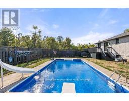 Discover exceptional build quality and professional workmanship in this 4-bedroom, 2-bath raised bungalow set on nearly 3 acres of private countryside. The dream backyard retreat features a solar-heated inground saltwater pool with a beautiful light display perfect for day or night enjoyment. Recent updates include newer windows and exterior doors. The main level offers multiple walkouts from the kitchen and dining room to a spacious wrap-around deck, ideal for entertaining or relaxing with a view. Inside, you'll find a generous primary bedroom, two comfortable guest rooms, and a 5-piece bath with a jet tub. The bright, finished lower level adds incredible versatility with large windows, a family room with a cozy gas fireplace, a media/entertainment room, oversized 4th bedroom, a 4-piece bath, an office/storage space, and a games/exercise room with updated flooring. With garage access from this level, you'll also have the option to create a private in-law suite. Attached 2-car garage, expansive property, and the perfect blend of comfort and style this home truly has it all (id:47351)
