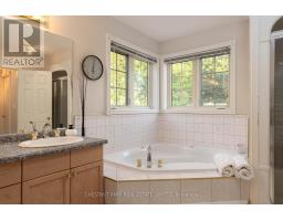 A Rare Ravine lot, custom home in Erion Estates, surrounded by mature trees. This bungaloft feels private, peaceful, and grand all at once. From the moment you walk through the front door, the home opens up with 2-story ceilings, large windows, and an abundance of natural light. Designed for easy main-floor living, the layout flows effortlessly with everything you need on one level. The spacious kitchen sits at the back of the home overlooking the ravine, offering a large island and a dining nook surrounded by views of your oasis yard. The family room feels open and inviting with double-height windows framing the treetops with a gas fireplace and has direct access to backyard patio through the siding door. The main floor primary suite is a true retreat featuring two walk-in closets and a generous ensuite with double sinks, a jetted tub, and shower. You also find a formal dining area, a bright living room with a wood-burning fireplace, main floor laundry with access to the double-wide heated garage, and a powder room for guests. Upstairs overlooks both the foyer and family room, along with two additional bedrooms and a full bathroom. The basement is partly finished with just under 8-foot ceilings. There are two additional bedrooms in the basement with walk-in closets. Rough-in plumbing is also in place in the basement if you wish to add an additional washroom or kitchen to create separate living accommodations. The backyard oasis is what truly sets this property apart with the lush, private ravine setting and established gardens with an irrigation system to keep it looking its best year-round. Homes like this, combining a ravine lot, timeless design, and a main-floor lifestyle, rarely come to market in Erion Estates. (id:47351)