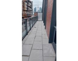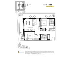 Brand new and never lived in at The Goode, a sought-after Distillery District condo residence, this 2-bedroom, 2-bath suite features a rare wrap-around terrace with open, unobstructed views. From one side, enjoy views overlooking the historic Distillery, while another exposure offers lake-facing views-a unique and highly sought-after combination.The suite offers 808 sq ft of interior space plus a 277 sq ft terrace, for a total of 1,085 sq ft. The layout feels bright and open with large windows throughout, and both bedrooms feature their own windows. The living room and kitchen are generously sized, ideal for comfortable everyday living and entertaining. Both bathrooms are full 4-piece baths, including a spacious primary ensuite.Residents enjoy 10th-floor amenities including an outdoor swimming pool, sun deck, landscaped gardens with fire pit, BBQ area, outdoor seating and workspaces, party room, games room, quiet lounge, co-working spaces, yoga studio, and fitness centre, along with 24/7 concierge service.Steps to cafes, galleries, markets, waterfront trails, and transit-this is downtown living with rare views and exceptional outdoor space. *** New blinds scheduled for installation within two weeks. (id:47351)