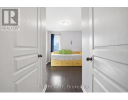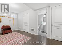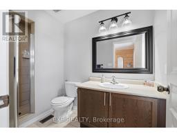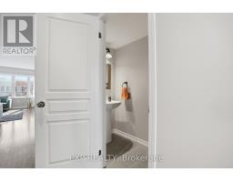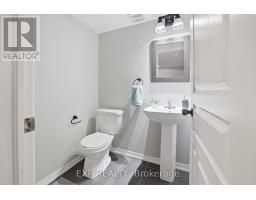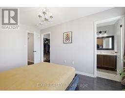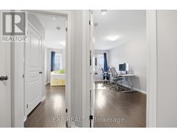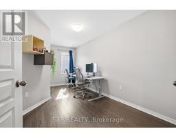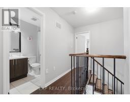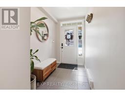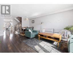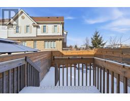 Beautifully maintained and thoughtfully upgraded townhouse located in a quiet, family friendly neighborhood. The main level features a versatile office or den and a convenient powder room, ideal for working from home. A stunning staircase with iron spindles leads to the bright open concept living and dining area, finished with elegant hardwood flooring and large windows that fill the space with natural light. The modern eat in kitchen features a centre island, granite countertops, custom backsplash, and a walkout through the patio door to the private backyard deck, perfect for BBQs and outdoor entertaining. This carpet free home offers three spacious bedrooms, including a primary retreat with a striking cedar shiplap feature wall, walk in closet, and private ensuite bathroom. Freshly painted throughout with updated bathrooms and designer light fixtures. The welcoming foyer provides direct access to the garage for added convenience. Ideally located with quick access to transit, Highway 401, and Whitby GO Station, while being close to schools, parks, shopping, and everyday amenities. (id:47351)