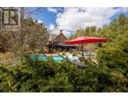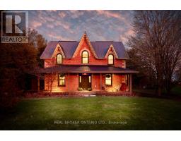 Step into timeless elegance, with this beautifully restored, circa-1850 estate, offering approx 2,873 sq ft of thoughtfully updated living space while preserving rich historical details. Situated on a beautifully landscaped approx 1.9 acre lot with a circular driveway, the home welcomes you with a charming covered front porch and a peaceful back porch, perfect for relaxing. Inside, features abound including wide wood trim, ornate staircase embellishments, vintage door handles, & a stunning stained glass window above the front door - all meticulously maintained. Upstairs, wide-plank wood flooring adds rustic character to all 4 good-sized bdrms. The updated kitchen is the heart of the home, featuring quartz counters, a tasteful tile backsplash, stainless steel appliances, and a large pantry cupboard. It flows effortlessly into a generous-sized dining room with a shiplap accent wall and walk-out to the porch, ideal for entertaining. The living rm offers built-in shelving and classic wainscoting, while a separate family rm, with a custom b/i desk can serve as a cozy retreat or a home office. Main floor laundry rm includes ample cabinetry and a walk-in closet. The primary bedroom boasts two walk-in closets, a 3-piece ensuite, and a private stairway to the main level. A quaint bench seat in the upper hallway adds a cozy, storybook touch, ideal for quiet moments or reading by the window. Outside, enjoy an in-ground pool surrounded by wrought iron fencing, landscaping, and a flagstone patio area. The heated, 3-car garage includes an epoxy floor and a finished loft for extra living space & storage. With recent upgrades including furnace(2022), AC(2025), HWT(2023), newer windows (most updated in the last 4 yrs), plus dependable metal roofing, this exceptional home offers classic beauty with modern reliability. This one-of-a-kind property is more than a home brimming with historic beauty & modern comforts, it offers a lifestyle of charm, convenience & sophistication. (id:47351)
