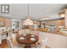 Welcome to Maple Ridge Estates, one of the most sought-after rural communities just outside of Metcalfe, where estate-style living meets everyday comfort. Set on over 2.7 acres of beautifully treed, park-like land, 8329 Rodney Farm Drive is a custom-built bungalow offering more than 3,100 sq ft on the main level, and a rare opportunity to own a home lovingly maintained by the original builder's family. Inside, a thoughtfully designed layout unfolds with expansive principal rooms that provide both flexibility and flow. The formal living and dining areas are ideal for holiday and celebration gatherings, while the inviting family room offers a relaxed space to unwind. At the heart of the home, a bright eat-in kitchen overlooks the property and offers generous cabinetry, ample counter space, and space to gather. With four spacious bedrooms and three full bathrooms all on the main floor, this home is exceptionally well-suited for multi-generational living or families seeking space without stairs. The primary suite offers privacy and comfort, while secondary bedrooms are generously sized to accommodate guests, home offices, or growing households. Main-floor laundry adds everyday convenience. Car enthusiasts, hobbyists, or those needing storage will appreciate the oversized triple-car garage. Downstairs, a massive unfinished basement presents a true blank canvas, envision a home theatre, gym, in-law suite, workshop, or all of the above. Outdoors, the property delivers serenity and space in equal measure. Mature trees, open green space, and endless sky create a peaceful backdrop for entertaining, gardening, or simply enjoying country living. For outdoor enthusiasts, the location is a dream - with nearby snowmobile trails adding four-season recreation right at your doorstep. If you've been looking for refined rural living with room to grow, room to gather, and room to breathe, this is it. (id:47351)
