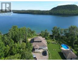 Welcome to an extraordinary waterfront home on breathtaking Nicol Island in Rossport, Ontario—one of Lake Superior’s most coveted private enclaves. This custom-built 4-bedroom, 2-bathroom home is nestled on 1.18 acres of land with shoreline on both sides of the island, with a total frontage of 300 ft, offering uninterrupted panoramic views of Lake Superior and Quarry Island where sunrises paint the sky and the lake sparkles like glass. It's absolute tranquility. Thoughtfully designed to embrace its natural surroundings, the main home features a wraparound tiered deck with a built-in hot tub, expansive windows, and a sunny open-concept layout perfect for lakeside living. Step into the sauna and solar-heated above-ground pool to unwind, or host guests in the charming guest house, complete with a lower-level games room and upper 1-bedroom loft. The detached garage is plumbed for heat and offers ample storage for all your outdoor gear. Recent upgrades include some updated windows (2021) and shingles (2019). The property is situated at the end of a private road on Nicol Island, which is connected to Rossport by a causeway and surrounded by the stunning Rossport Archipelago, a breathtaking cluster of islands located just offshore from the village of Rossport, on the north shore of Lake Superior. It’s —ideal for kayaking, fishing, and hiking in the Lake Superior National Marine Conservation Area. This is more than just a home—it’s a lifestyle on one of the most scenic stretches of Canada’s north shore. Rossport and Nicol Island offer a rare blend of natural beauty, artistic soul, and historical depth—all wrapped in the serenity of Lake Superior’s northern shore. Whether you’re seeking a year-round residence, a family getaway, or a legacy property, this is a once-in-a-lifetime opportunity. Visit www.century21superior.com for more info and pics. (id:47351)