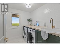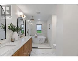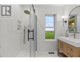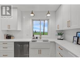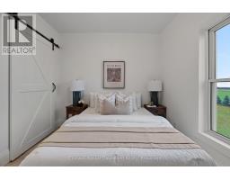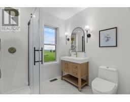 Out where the nights go quiet and the sky still turns gold at dinner hour, this double yellow brick country home sits on 1.88 acres, calm, finished, and ready for its next people. No renos. No projects. Just move in and start living. Inside, the home feels fresh and grounded. White walls, soft greens, and warm black and gold accents play off natural wood tones for that modern farmhouse feel. The kitchen is the kind that makes you want to cook again, with a massive quartz island, pot filler, and a door to the deck where you catch the sunset over the fields. Off the entry, the laundry room is both beautiful and practical, and the main floor bedroom doubles perfectly as an office. The living room opens to the kitchen so no one ever misses the game or the conversation. The bay window floods the space with golden evening light, while a tiled electric fireplace and reclaimed wood-beam mantle add cozy charm. Upstairs, the primary bedroom feels like a quiet retreat, airy, calm, and spacious enough for a king bed and sitting area. The upper bath is the true showstopper: a full wet room with an open-concept shower and freestanding soaking tub, tiled to the ceiling and accented with gold fixtures. Both bathroom vanities feature warm wood textures, including a stunning fluted double vanity that feels straight out of a design magazine. Outside, the lifestyle speaks for itself, natural gas heat in the country, fibre internet, mature trees, and open, flat land with room for a future shop, garden, or pool. The deck is updated, water and hydro are already run outside, and the double garage with inside entry is spotless. If you've been waiting to move to the country without inheriting someone else's projects, this is the one you simply walk into and start living. (id:47351)