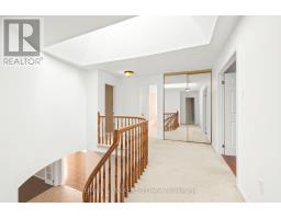 Situated in Fallingbrook, this well-maintained family home offers generous living spaces and a warm, welcoming atmosphere, set on a private, sun-filled corner lot surrounded by mature greenery. Passing the freshly asphalted driveway and interlock porch, the main level welcomes you with a sweeping, curved staircase that leads to the adjoining living and dining rooms, which feature rich hardwood flooring, smooth ceilings, and crown moulding. The updated kitchen has sleek white cabinetry, ample counter space, stainless steel appliances, and a layout that opens to the family room, which is anchored by a wood fireplace and large windows overlooking the backyard. Upstairs, the expansive primary suite features hardwood flooring, abundant natural light, and a 5-piece ensuite bathroom with a deep soaker tub, dual-sink vanity, bidet, and separate shower. A den space and three additional bedrooms provide flexibility, each with large windows, generous closet space and one with a 4-piece ensuite of its own. A second 4-piece bathroom on this level services the other two secondary bedrooms, while a skylight adds brightness to the entire level. The fully renovated lower level features a spacious recreation room, recessed lighting, and built-in cabinetry. Two additional spaces, a 2-piece bathroom and a storage area complete this level. Outdoors, the private backyard is framed by mature hedges for privacy and features a large grass area, making it a great gathering space for the family. Set in a peaceful, family-oriented neighbourhood, this home offers proximity to top-rated schools, beautiful parks, and walking trails, including Princess Louise Falls. With quick access to major routes and the upcoming Orléans LRT extension, this is the perfect home for families and professionals alike! Notable features include a central communication system, a central water filter, solar panels, a HEPA Air filter, and central heat & cooling are supplemented by a thermopump for added efficiency. (id:47351)