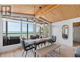 SAND, SERENITY AND SUNSETS - THIS IS LAKE LIFE AT ITS FINEST... HEAR THE WAVES! Nestled just north of Goderich in the coveted LAKELAND ESTATES, this virtually lake-level cottage with BIG 110' lake frontage offers direct access to one of the area's widest, most walkable/unimpeded sandy beaches. No stairs, no cliffs-just pure shoreline magic. Step inside this bright and beautifully updated 3+bedroom, 1.5-bath retreat and feel the charm of authentic cottage living. The open-concept kitchen and living room flow seamlessly onto a spacious lake-facing deck, while the lower level offers a second finished living area and its own panoramic deck-perfect for entertaining or unwinding with a glass of wine as the sun dips below the horizon. Features You'll Love: Two expansive decks with unobstructed lake views, Wall of windows in the main living/dining area & lower level, New studio den (2022) and new basement bedroom (2023), Wraparound decking, new staircase (2020), and armour stone landscaping, Cedar outdoor rain shower on lakefront deck... it's a beauty! Private laneway to drive boat/beach gear directly to the shore, Turnkey sale includes kayaks, life jackets, TV, beds, appliances, Weber BBQ & more, Lots of privacy with forest south and trees area on north, and very low traffic on the beach throughout all seasons, Outdoor stone fireplace on separate deck overlooking own forest and lake, a great shaded area to cool down during peak summer days, New well installed in 2025. New sewage tank fully inspected by Municipality, passed in 2025, Metal roof with many years of life, Best-in-class Lake Huron living with direct access to the water. Main renovation done in 2017 that included new decks, plumbing and electrical. Private driveway with parking for 3/4 cars. 21'x10' utility room. Low Maintenance cottage with no grass cutting, low complexity and efficient water/sewage/heating system! Unbeatable value-priced below comparable 'on bluff' resales and leading its category in the area! (id:47351)