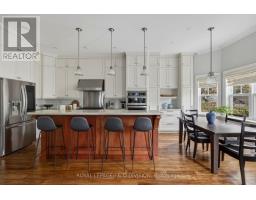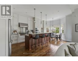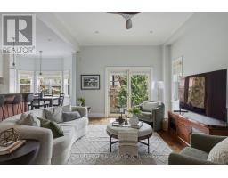 This grand, fully detached home, set on a quiet, tree-lined street in the heart of the Beaches, just north of Queen, with a private drive and attached garage, offers a rare balance of scale, flow, and refined craftsmanship for modern family living. A beautifully landscaped front, framed by rock gardens and a generous wraparound porch, sets an elegant tone. Inside, a proper foyer introduces a thoughtfully designed main level anchored by a striking multi-sided fireplace. Solid oak floors run throughout enhancing the architectural distinction at the home's centre. The layout is both graceful and functional, with formal living and dining rooms featuring crown moulding, recessed lighting, high ceilings and expansive windows. The living room, with its stylish fireplace and bay window overlooking the porch, offers an inviting setting for quiet evenings or entertaining. A soaring family room flows into a chef-inspired kitchen with full-height shaker cabinetry, premium appliances, and an expansive breakfast bar. A sunlit eat-in area overlooks the garden, while a walkout leads to a private outdoor retreat with built-in BBQ, gas line, and irrigation - ideal for effortless summer living. Upstairs, the primary suite provides a serene retreat with tray ceilings, heated floors, a walk-in closet, spa-like ensuite with double vanities and hex tile detailing, and a private south and east-facing balcony. 3 additional bedrooms offer hardwood floors, California shutters, 2 have custom built-ins, and all are flexible spaces for family, guests, or a home office. The lower level adds versatility with a bright, open layout, high ceilings, a 3 pc bath, laundry, and separate garage entrance - ideal for a media room, gym, and / or guest suite. The dedicated garage and private drive parking is a rare find for this area! Steps to Kew Gardens, the lake, and the beach, and moments to Queen Street, with easy downtown access via TTC or Lakeshore - this is a sophisticated, move-in ready Beaches home. (id:47351)