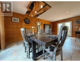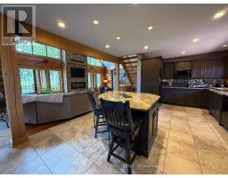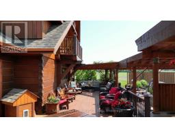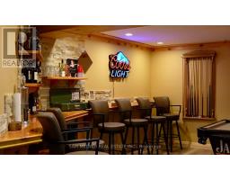 Welcome to this truly one-of-a-kind, custom-built log-style home set on a sprawling private lot. Perfectly situated just minutes from Grand Bend, Pinery Provincial Park, and Ipperwash Beach, this property seamlessly blends rustic charm with modern luxury, making it ideal as a full-time residence, weekend retreat, or investment getaway.Inside, the stunning open-concept design is highlighted by soaring 20-foot cathedral ceilings, abundant natural light, and the ultimate comfort of heated floors across all levels. The finished lower level is an entertainer's dream, complete with a spacious recreation area, a custom bar, a pool table, and two additional bedrooms. Outside, enjoy seamless indoor-outdoor living on a massive 12' x 49' back deck featuring a built-in outdoor kitchen, a wood-fired pizza oven, and a relaxing hot tub. The tree-lined, beautifully landscaped grounds also offer a decorative rock garden, a water fountain, and an inviting front porch for your morning coffee.Adding incredible value is a heated 3,710 sq. ft. workshop that provides exceptional space for hobbies, business use, or storage. Rounding out this spectacular property are recent upgrades including new windows (2022), dual A/C units (2023), and a new boiler (2023), along with the convenience of both municipal and well water. This property truly checks every box for comfort, versatility, and lifestyle appeal. (id:47351)