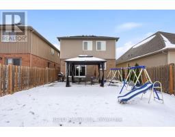 Welcome to 8553 Jennifer Crescent, a masterpiece of modern living built in 2014 by prestigious custom builder Pinewood Homes, offering a rare sanctuary with no rear neighbors. This stunning property immediately captivates with its sophisticated stone and stucco exterior and an elegant interlock driveway. Inside, the open-concept main floor features living room with arched window and elegant California shutters throughout. The heart of the home is a modern kitchen with espresso-toned cabinetry and a mosaic backsplash, flowing seamlessly into a bright dining area. Large patio doors lead to your private backyard retreat, bordered by a dense privacy hedge and featuring an interlock patio under a protective gazebo-the perfect setting for summer relaxation or family fun including play sets and a fire pit. As you head to the second level, you'll find a clever office nook at the spacious landing, ideal for remote work. The upper floor boasts three spacious bedrooms, including a serene primary suite with a dedicated 3-piece ensuite. A second bedroom impresses with vaulted ceilings and a stunning arched window, while the pristine main bathroom offers extensive cabinetry and modern lighting. Functional elegance continues in the professionally finished basement, a cozy sanctuary anchored by a magnificent floor-to-ceiling cultured stone gas fireplace and a designer laundry center with high-end appliances. Every inch of this home is move-in ready and meticulously maintained. Perfectly located in a premier Niagara Falls enclave, you are within walking distance to top-rated schools, parks and grocery store, with immediate access to Costco, major highways, and championship golf courses. (id:47351)