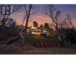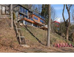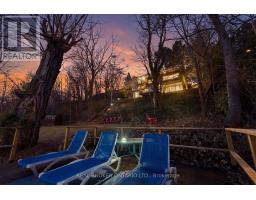 A rare waterfront setting in Burlington where land, water, and everyday living come together in a way that feels both natural and hard to find. Set on nearly half an acre with over 130 feet of shoreline and riparian rights, this home sits elevated above the bay with wide open views and a sense of space that immediately sets it apart. It feels quiet here, yet you're still just minutes from everything you need. From the street, the home stays tucked away. As you make your way toward the water, it opens up around you. The view stretches out, the air changes, and the setting takes over. A standout feature is the hidden waterfront trail extending nearly half a kilometer along the shoreline, accessed directly from the property. It becomes part of your daily routine. Morning walks, runs along the water, or simply stepping out to reset. Life here naturally moves outdoors. Layered decks overlook the bay, creating space to gather, unwind, and take in the view. Mornings start quietly by the water. Afternoons bring time outside on the water or around the shores. Evenings slow down with sunsets and the occasional glow of fireworks across the harbour. Inside, the home spans three levels, each offering its own view of the water. The layout provides flexibility for living, working, and hosting, with a natural separation between spaces. Every season brings something different. Summer is active on the water. Fall brings quiet shoreline walks. Winter offers stillness and skating on colder days. Spring brings everything back to life. The Hidden Shore invites you outside, connects you to the water, and creates a lifestyle that's hard to replicate. It's a property you don't just live in. It's one you experience every day. (id:47351)