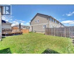 This beautifully maintained 3-bedroom townhouse offers open-concept main level, hardwood flooring on the main floor, tiled bathrooms, and extra-soft wall-to-wall carpet on the stairs and second level. The sun-filled kitchen features an island and patio door access to a backyard with plenty of natural light. The spacious bedrooms offer ample storage. The unfinished basement with a large window is perfect for storage, gym space and includes laundry with washer and dryer. Complete with all appliances, a main-floor powder room, single attached garage with automatic opener, and easy access to Highway 417, parks, and amenities - this home truly has it all. June 15 move-in (id:47351)