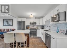** WALKOUT BASEMENT ** Welcome to this beautifully upgraded freehold townhouse, perfectly situated on a quiet, family-friendly cul-de-sac. Move-in ready and tastefully finished from top to bottom, this home exudes modern style and comfort. The professionally landscaped front yard creating an inviting first impression. Inside, the open-concept main level showcases a designer kitchen complete with a centre island, quartz countertops, sleek backsplash, and stainless steel appliances. The bright and spacious living area features large windows and a built-in entertainment wall, ideal for relaxing or entertaining. Upstairs offers three generous bedrooms and two bathrooms, including a primary suite with a large closet and private 3-piece ensuite. The finished basement extends the living space with a beautifully finished recreation area and a convenient fourth bathroom. Step outside from the walkout basement to a private, fully fenced backyard with newly laid sod and no rear neighbours perfect for outdoor gatherings. With parking for two vehicles, inside access from the garage, and ample visitor parking nearby, this exceptional home combines comfort, convenience, and a prime location near top-rated schools, parks, and everyday amenities. (id:47351)
