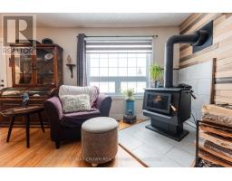 Welcome to this inviting 1,080 sq. ft. semi-detached home offering warmth, character, and thoughtful updates throughout. With 3 bedrooms and 1 full bathroom, it blends timeless charm with practical living - perfect for families, first-time buyers, or anyone seeking a move-in-ready home with personality. The bright main floor features a kitchen and dining area ideal for everyday living and entertaining. The kitchen offers soft-close cabinets and drawers, while the dining space flows into a cozy living room highlighted by a Blaze King fireplace (manufactured in 2018). An original brick chimney between the dining and living areas adds vintage charm. A small front porch with closet space provides convenient storage, and a wood accent wall adds warmth to the living room. Original cherry wood interior doors enhance the home's character. Hardwood floors run through the dining and living rooms and continue throughout the second floor for a cohesive feel. Upstairs offers three comfortable bedrooms, a 4-piece bathroom, and two hallway closets for additional storage. The finished basement expands your living space with a rec room - perfect for movie nights, a play area, or a home office - plus a combined utility and laundry room with a mud sink. Outside, the 48' x 142' lot provides plenty of room to enjoy. A 10' x 19' veranda/deck (built in 2020) is ideal for summer gatherings. The 30' x 16' insulated garage (built in 2016) offers excellent storage and workspace, along with an additional shed. The backyard also features a screened-in gazebo, a fire pit area, and a rear laneway. Major updates include new windows and exterior doors (2013), roof shingles (2015), furnace (2016), hot water tank (2016), and a 100-amp breaker panel (2016), offering peace of mind for years to come. A home that combines character, comfort, and outdoor enjoyment - ready for its next chapter. (id:47351)