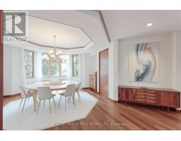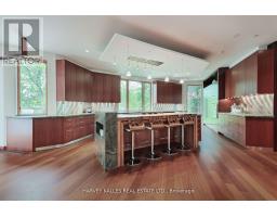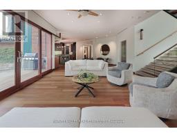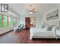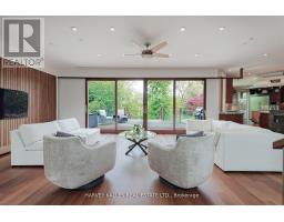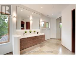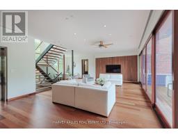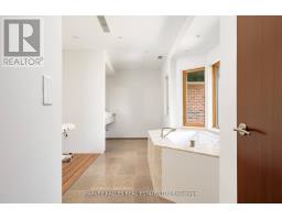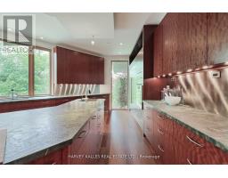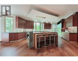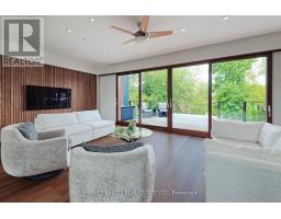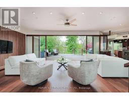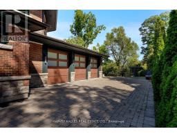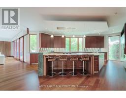 Discover a gem, custom-built as a multi-generational home, offering over 11,000 sq ft of luxurious living space on a rare 125ft double lot at the edge of the Humber Valley in the tree-lined Kingsway neighbourhood. This residence is a statement of contemporary elegance and sophistication, perfect for the discerning family.Inside, experience clean lines and exquisite details that enhance comfortable luxury living, including sound-isolated suites, Jatoba hardwood floors, stunning Persian serpentinite kitchen countertops, and heated stone floors for ultimate comfort.Accessibility is a key feature, with snow melt for the front porch, steps, ramp and driveway, a commercial 4x6 ft elevator, and 4 ft wide hallways to ensure effortless movement throughout the residence.The ground floor features a bright, open-plan living area that seamlessly integrates the chefs kitchen, dining, and living spaces, extending to a partially covered upper deck with a 17ft wide opening. A heated 3-car garage is cleverly positioned at the side of the house.The primary retreat is where luxury meets tranquility, featuring two generous walk-in closets and two ensuites one complete with a massage room and whirlpool tub offering tree-top views. Two additional spacious bedrooms, each with walk-in closets, share a thoughtfully designed bathroom suite with dual sinks, ample storage, and a separate area for added privacy. The oversized fourth bedroom also includes its own ensuite bathroom and walk-in closet, providing comfort and convenience for family or guests.The ground floor bedroom suite with a Juliet balcony offers a perfect retreat for guests.Venture to the finished lower level, where 10+ ft ceilings create a light and airy ambiance.This expansive space features a wide sliding door leading to the lower deck, ideal for entertaining.With multiple entertainment areas, including a stepped home theatre and sprawling park-like backyard, this home is designed for those who appreciate spacious comfort. (id:47351)