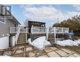 This fantastic elevated bungalow is freshly painted and offers a bright, functional layout throughout. Featuring over 2100 sq/ft of living space, this home offers a spacious eat-in kitchen and an open living/dining area highlighted by a large patio door leading to the deck-perfect for indoor-outdoor living. The main level is completed by two spacious bedrooms and a full 3-piece bath, with the layout easily convertible back to three bedrooms if desired! This well-renovated home provides peace of mind with a newer roof, newer windows, all-new siding with dry-stack stone accents, and a newer deck featuring a heated above-ground pool! The detached garage also has a new roof and the double-wide paved driveway offers ample parking. The walk-up lower level has a separate entrance and provides excellent additional living space, with finishing touches awaiting your vision. It includes a generous rec room with a cozy newer gas fireplace, third & fourth bedrooms, 3-piece bathroom, large laundry area, rec room, and ample storage! A newer furnace and newer air conditioning add to the home's comfort and efficiency. The list of updates is plentiful! Set on a nicely treed and landscaped lot filled with mature perennials, this home offers outstanding value in a well-rounded package close to the City's West End amenities! (id:47351)