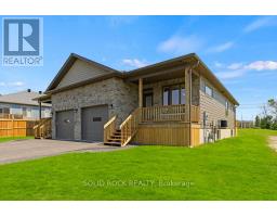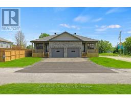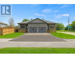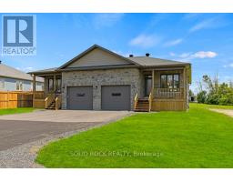 Iroquois-A great place to raise a family or retire! You will love the beautiful stone on front of your new bungalow & eye-catching James Hardie siding on the side & rear of home! Wall-to-wall ceramic tile & gleaming hrdwd in 1100 sq ft main level adds to the grandeur! The multitudes of big, bright windows make this brand-new Energy-Star semi feel like a single-family homeYou will be impressed with many builder upgrades from lifetime warranty shingles to 9 ft ceilings thru-out main level including in huge open concept grand room that extends from front door to rear patio door that leads to private rear deck & nice backyard! Soft close kitchen cabinets feature many pull-outs, custom hardware & crown moulding finished flush to ceiling at top of kitchen cabinetry-Centre island with breakfast bar will surely impress! Gorgeous new hi-end stainless steel energy efficient kitchen appliances as well as a brand-new washer & dryer! The east side of home features a spacious primary bedroom with large walk-in closet, 3-pc ensuite with quartz vanity countertops that match countertops in main level 4 pc bath as well as the quartz countertops in kitchen-Absolute wow-factor!-Other upgrade incl Inside entrance to the insulated garage as well as an 8 ft high garage door-Garage has both hot & cold water to wash your vehicle-Fully finished lower level has full height 8 ft ceilings & hi-end vinyl floor in both spacious bedroom with big egress windows, large family room & impeccable 3 pc bath for a possible in-law suite-200 amp breaker service, on-demand hot water & HE nat gas furnace-The bungalow has spray foam insulation on both levels incl utility room & even the garage! $70/mo. nat gas cost for heat/hot water-7-year new home warranty! -Walking distance to public school & high school-Anytime Fitness-grocery store-pharmacy-Tims-LCBO-RBC-24-hour gas bar-restaurants-one of the nicest beaches in Eastern Ontario-marina-waterfront golf course-Come for a look, you will be impressed! (id:47351)