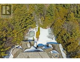 Welcome to Deer Creek in Durham's most prestigious enclave. This exceptional 6+1 bedroom, 7 bathroom estate home sits on a private 1.34-acre lot and offers over 5,100 sq ft of refined living space. Enjoy resort-style outdoor living with an inground pool, hot tub, and tranquil setting backing onto lush green space and a golf course, surrounded by mature trees for ultimate privacy. Designed for both comfort and entertaining, the home features 9-ft ceilings on the main floor, a gourmet chef's kitchen, double-sided gas fireplace between the living and family rooms, and a sunken office/den. The upper level offers four spacious bedrooms, including two with private ensuites and two connected by a Jack & Jill bath. A separate in-law wing includes its own kitchen, living room, two additional bedrooms, full bathroom, and private deck. Additional highlights include an oversized bathroom with accessible shower, elevator/lift access from the garage, and a finished basement with a 7th bedroom, wine cellar, and generous open space for recreation or customization. (id:47351)