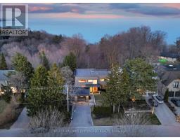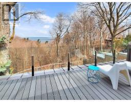 Discover this exceptional lake-view residence, where contemporary design meets serene natural beauty. This stunning home features a sleek open-concept layout, accented by expansive windows and multiple walkouts, showcasing unobstructed views of Lake Ontario and lush conservation land. From the moment you step into the grand foyer with soaring 18.5-foot ceilings, a statement chandelier, oversized marble slab flooring, a two-storey window, and a custom Walnut guest closet you'll be captivated by the sophisticated details throughout. The main level is an entertainers dream, offering a seamless flow between the spacious living, dining, and family rooms, all adorned with pot lights and rich Walnut flooring. The chef-inspired kitchen is the heart of the home, boasting a dramatic waterfall island with Stone countertops, seating for four, and custom pull-out organizers. This space opens directly to multiple outdoor entertaining decks, perfect for hosting or relaxing while enjoying panoramic views. Ascend the striking open-riser Walnut staircase, framed with glass railings and stainless steel handrails, to find a luxurious primary retreat. The serene primary suite offers a private sanctuary, complete with its own balcony, window wall with lake views, a custom dressing room with skylight and extensive cabinetry, and a spa-like ensuite featuring heated floors and serene conservation views. The fully finished walk-out lower level adds even more space to unwind, with a large recreation room featuring heated floors and direct access to the beautifully landscaped rear grounds. Enjoy quiet evenings around the firepit or take advantage of the convenient access to the upper decks, seamlessly connecting indoor and outdoor living. This exceptional property offers the rare combination of modern luxury, privacy, and spectacular natural surroundings perfect for those who love to entertain or simply soak in the beauty of the outdoors. (id:47351)