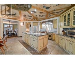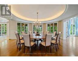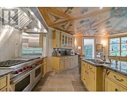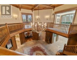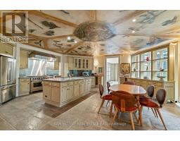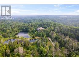 Welcome to 9 Flaherty Lane, a breathtaking custom estate available for lease in one of Caledon's most prestigious enclaves. Set on 10.6 acres and backing onto 50 acres of conservation land, this residence offers a rare opportunity to enjoy resort-style living in complete privacy. With over 13,500 square feet above grade and more than 20,000 square feet in total, the home provides expansive space, refined finishes, and a lifestyle of unmatched comfort. Inside are five spacious bedrooms, each with its own ensuite, including a luxurious Owners Suite with dual his-and-her ensuites. A private guest suite on the lower level ensures comfort and discretion. Soaring ceilings from 10 to 21 feet span all three levels, with dramatic open-to-above living areas that flood the home with natural light, enhanced by a bespoke solarium and sunroom. Signature features include a two-level mahogany library with spiral staircase, a home theatre, a retro 1950s-style diner, and a gourmet kitchen with a 60" Wolf gas cooktop and oven. The five-car garage, multiple fireplaces, and nine geothermal systems ensure both luxury and efficiency. Outdoors, enjoy a spring-fed one-acre pond, a gazebo, and a designer patio with custom railings overlooking the water. Additional highlights include a high-capacity well pumping 120 litres per minute, an oversized septic system, a new roof completed in 2024, and a 16-camera Telus security system. Built to the highest standards with custom materials. Whether relocating or simply looking for a private retreat, this estate offers an exceptional experience. (id:47351)