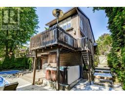 Welcome to this stunning, fully renovated home in the desirable community of Fonthill. Offering over 4,100 sqft of finished living space, this immaculate residence seamlessly combines luxury & modern design, creating a perfect sanctuary for those seeking elegance & comfort. The heart of the home is the professionally designed kitchen featuring quartz countertops with a striking waterfall island, custom cabinetry, & high-end Fischer & Paykel appliances all arranged for the discerning chef. Adjacent to the kitchen, you'll find a spacious laundry suite w/a 2pce powder room, Brazilian slate floors & convenient access to the 2 car garage. The living areas exude warmth &sophistication, highlighted by a double-sided wood-burning fireplace that creates a cozy ambiance. Vaulted ceilings & exposed brick accents in the living room add rustic charm, complemented by Venetian plaster walls & rich oak floors that run throughout the home. A sunroom with skylights opens to the dining area & seamlessly connects to a large deck overlooking the backyard oasis. Upstairs, discover a charming music loft overlooking the LR below. The primary suite is a luxurious retreat w/vaulted ceilings, a private sitting loft & a spa-inspired bathroom with a double vanity, under-cabinet lighting, an egg-shaped soaking tub, & a separate shower. A spacious custom W/I closet completes this private sanctuary. The basement features a zen garden leading to a wellness area with a fully equipped gym & a 5-piece spa bathroom, including a cedar sauna for tranquil escapes. Adjacent, you'll find the man cave bar area with 2 TVs, a live-edge red oak bar, beer tap & W/O access to the backyard. The rec rm boasts a custom built wall unit, built-in TV, & a large electric fireplace, perfect for relaxation & entertaining. The backyard is a private retreat, surrounded by professionally landscaped gardens, a heated pool, hot tub, & pool house. Multi-level decks & a stone patio create the ideal setting for outdoor gatherings (id:47351)