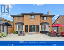 Welcome to 9 Kortright Road East, where elegance meets everyday functionality in one of Guelphs most desirable neighborhoods. This beautifully renovated, two-storey brick home offers exceptional curb appeal with a double garage, interlock driveway, modern garage/front door, and mature landscaping. Step inside to a grand foyer with a curved wooden staircase and soaring ceilings, setting the tone for the refined interiors throughout. The heart of the home is the stunning chefs kitchen, featuring an oversized quartz island with seating for ten, sleek black cabinetry, a built in pot-filler, and statement lighting. Stunning glass sliding doors and picture windows provide panoramic views and seamless access to the resort-style backyard with a heated pool ideal for summer entertaining and relaxing. Enjoy the thoughtfully designed layout with spacious principal rooms, including a formal living room and cozy family room with accent wall and brick fireplace. Upstairs, the primary suite is a luxurious retreat, featuring a 4pc bathroom with soaker tub and walk-in closet. The second bedroom includes a secondary bedroom/dressing room which has its own entrance to the shared 4pc bathroom, while the third bedroom is also generous in size. Downstairs, find a 2-bedroom basement apartment with ample living space. Separating the apartment is a door that takes you through to the exercise room. Enjoy the footprint of your basement while having an entirely separate suite. This meticulously maintained home is move-in ready with countless upgrades and located just minutes from top-rated schools, the University of Guelph, shopping, transit, and parks. (id:47351)