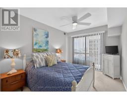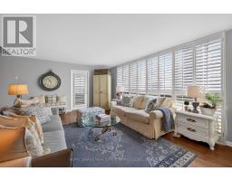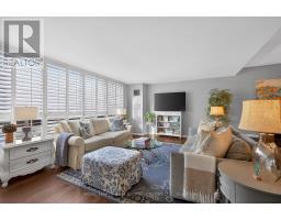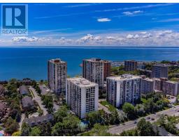 Enjoy elevated living in this impeccably updated luxury suite, showcasing sweeping views of Lake Ontario & the Niagara Escarpment. Offering approximately 1,538 sq ft of well-designed living space, this two-bedroom plus den residence boasts a bright, open-concept layout. Featuring hand-scraped, wire-brushed hardwood flooring, upgraded light fixtures & ceiling fans, California-style shutters, floor-to-ceiling windows, smooth ceilings, tasteful neutral décor & much more! Three separate walkouts lead to a generous 160 sq ft balcony, creating seamless indoor-outdoor living with tranquil lake vistas. The heart of the home is the well-appointed designer kitchen boasting a coffered ceiling with pot lights, solid maple cabinetry with pull-out drawers, pantry storage, quartz counters & backsplash, stainless steel appliances & a centre island with breakfast bar. The open dining area flows effortlessly into the oversized living room while the versatile den offers flexibility as a home office or guest space. The primary suite hosts a sitting lounge, a spa-inspired four-piece ensuite & multiple closets. A bright second bedroom with balcony access, gorgeous three-piece guest bathroom & spacious laundry/storage room complete this outstanding condo. Heating & cooling systems updated in 2022. Included are one owned underground parking space & an exclusive-use storage locker. Enjoy extensive building amenities, including an indoor pool, exercise room, saunas, lounge/library, party room, billiards, indoor golf range, woodworking shop, ping pong room, darts & crafts room, social activities & more. Outdoor amenities include stunning gardens with seating areas & a tennis/pickleball court. Dogs not permitted. Situated in the desirable "Ennisclare on the Lake" complex in Bronte Village just steps away from the lake, Bronte Harbour, trails, shopping, amenities, cafes & restaurants. Luxury adult lifestyle living by the lake! VIEW THE 3D IGUIDE VIRTUAL TOUR FOR MORE PHOTOS, FLOOR PLAN & VIDE (id:47351)