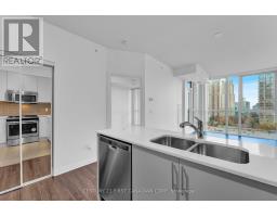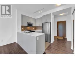 Elegant 1-bedroom plus den residence featuring 9' ceilings and dramatic floor-to-ceiling windows that flood the space with natural light. This sophisticated, carpet-free suite offers a thoughtfully designed open-concept layout with a sleek modern kitchen showcasing stainless steel appliances, quartz countertops, and a designer tiled backsplash. The combined living and dining area extends seamlessly to a private balcony with a clear, unobstructed view. Includes window coverings, one locker, and one parking space. Residents enjoy premium amenities including an indoor pool, sauna, fully equipped fitness centre, and visitor parking. Ideally situated steps to shopping, dining, transit, and schools, with quick access to Hwy 403 and the future LRT-offering both convenience and elevated urban living. (id:47351)