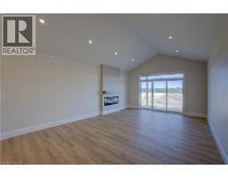 Downsize without compromise with this gorgeous end unit townhome by Duimering Homes. Tucked at the end of Bedell Drive in Drayton, this newly built bungalow pairs low maintenance living with elevated finishes. A vaulted great room ceiling amplifies light and space (hello, extra windows and 9 ceilings) and centres around a cozy electric fireplace with wood mantle. The gourmet kitchen features quartz counters, custom full height cabinetry, stainless appliances, and an island flowing into the dining and overlooking the family room. Out back enjoy a covered back patio for easy indoor/outdoor living and partial privacy fence. Two generous bedrooms include a serene primary suite with walk in closet and spa inspired ensuite. Practical perks: main floor laundry/mudroom and an attached 2 car garage with a double wide paved driveway. With only one shared wall, added privacy, and a quiet, walkable location, this is single level living without sacrificing style, comfort, or sunlight. (id:47351)