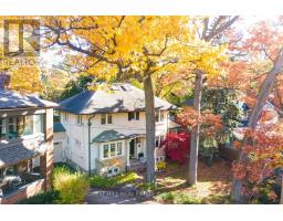 Set on one of Wychwood's most rare and coveted parcels, this exceptional home rests on a country-like, pie-shaped lot exceeding 10,000 sq ft, dramatically widening to an extraordinary 140 ft at the rear-the equivalent width of four properties on Wychwood Ave. A setting of this scale, privacy, and natural beauty is exceptionally rare. Surrounded by towering century-old trees, the home enjoys a slightly elevated elbow position with a commanding presence over one of Wychwood's most sought-after storybook, dead-end streets. Striking curb appeal showcases timeless architecture, a classic facade, and elegant proportions. Inside, sun-filled principal rooms feature hardwood floors, a spacious living room, glass-lined den, and a wood-burning fireplace. An exercise room or office overlooks the gardens. The French-inspired gourmet kitchen flows seamlessly into a bright family/sunroom with a gas fireplace, ideal for both everyday living and entertaining. The spectacular backyard offers a true urban oasis-lush gardens, mature trees, and exceptional open space with endless potential to enjoy as-is or add a pool, fountain, or play area. Offering 5 bedrooms, a finished basement, and a generous footprint, the home provides ample room to grow and gather. Ideally located near Davenport, Wychwood, and St. Clair, close to shops, the Wychwood Barns Market, excellent schools, and daily walks through Wychwood Park and the Cedarvale Ravine. A rare opportunity to enjoy space, privacy, and nature in one of Toronto's most cherished neighbourhoods. (id:47351)